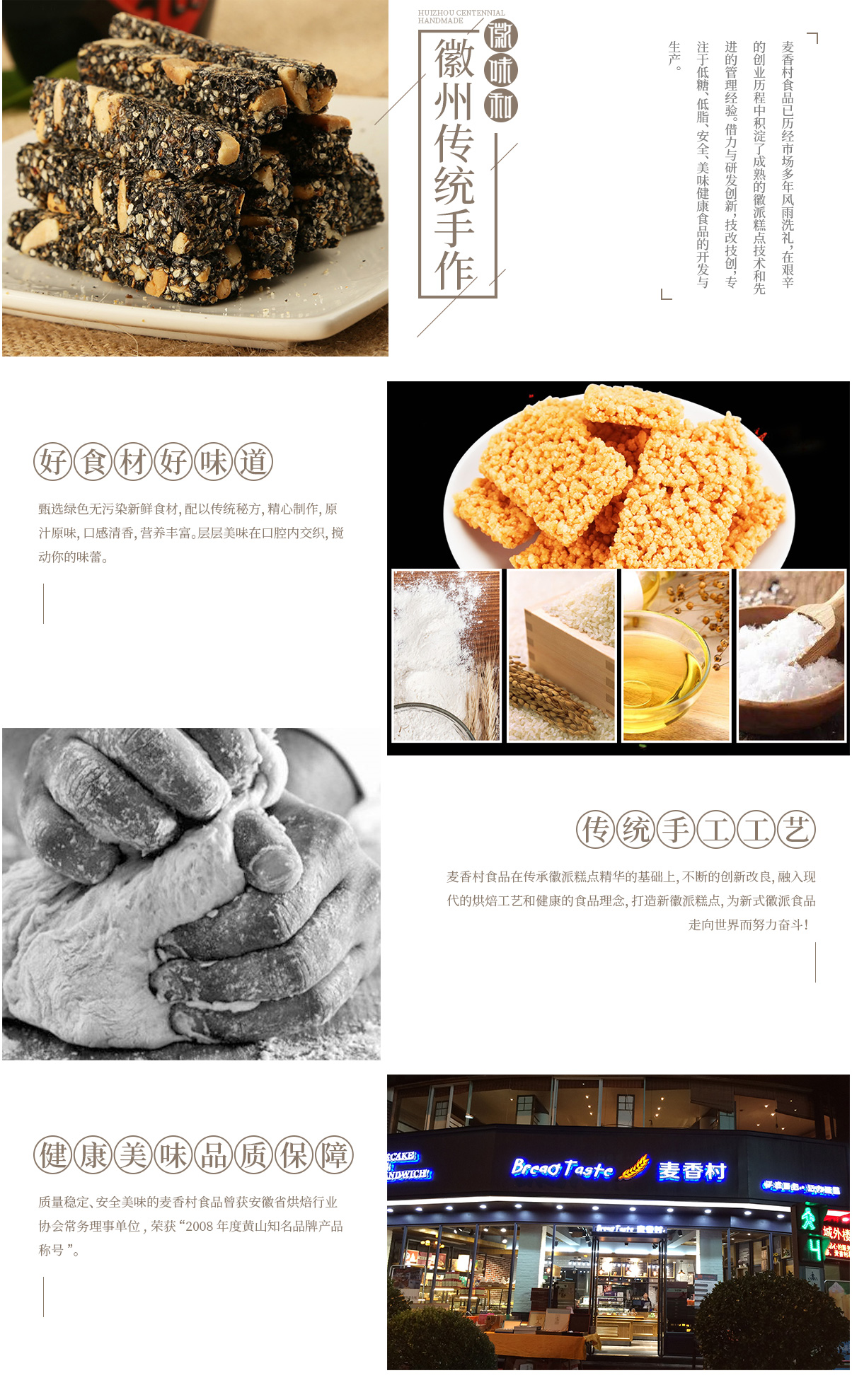 黃山市麥香村食品有限公司,位于中國四大古城之一徽州歙縣。是專業生產、銷售各類中、西糕點的現代化食品企業。主要產品有:生日蛋糕、西點、面包、燒餅、粽子、月餅、麻酥糖等。 麥香村食品已歷經市場多年風雨洗禮,在艱辛的創業歷程中積淀了成熟的徽派糕點技術和先進的管理經驗。借力與研發創新,技改技創,專注于低糖、低脂、安全、美味健康食品的開發與生產。質量穩定、安全美味的麥香村食品安徽省烘焙行業協會常務理事單位,...